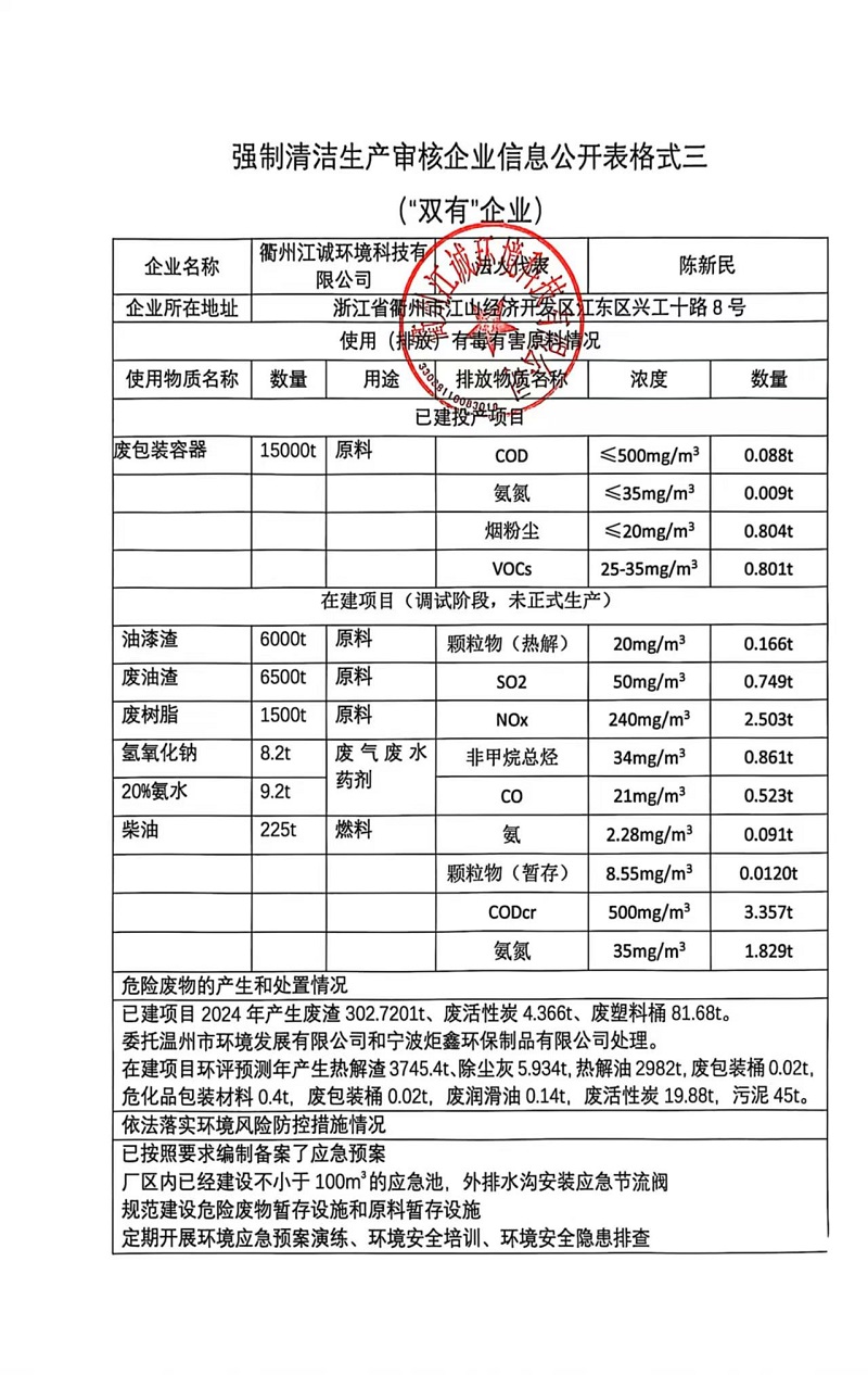 强制清洁生产信息公开表